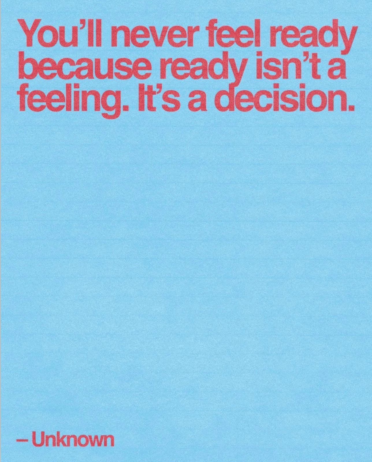 tradução: “você nunca vai se sentir pronto, porque estar pronto não é um sentimento.