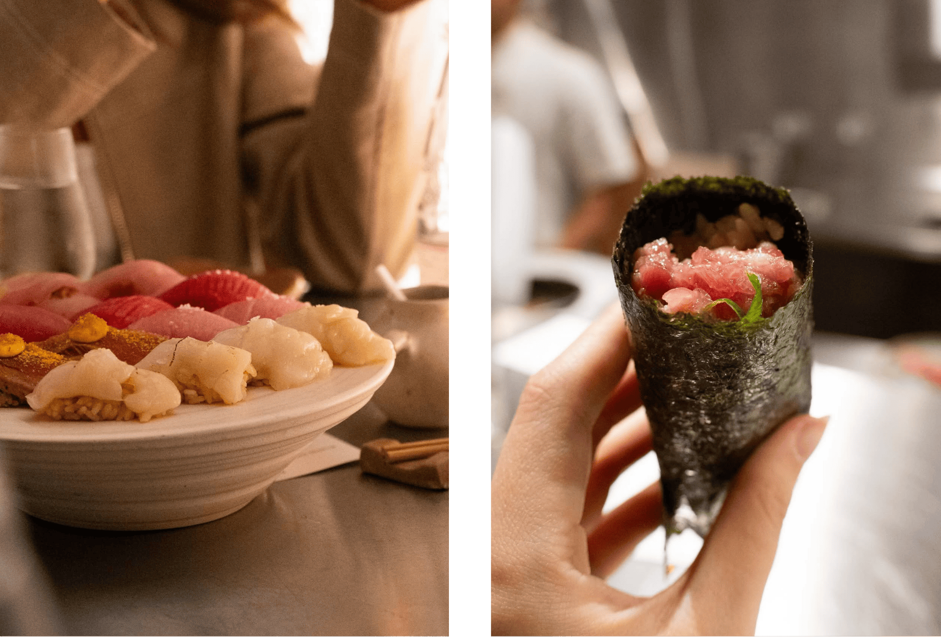 Sushi de alta qualidade, servido de forma direta, com niguiris e hand rolls preparados na sua frente. Take note: hand roll de toro bluefin e spicy tuna são indispensáveis.